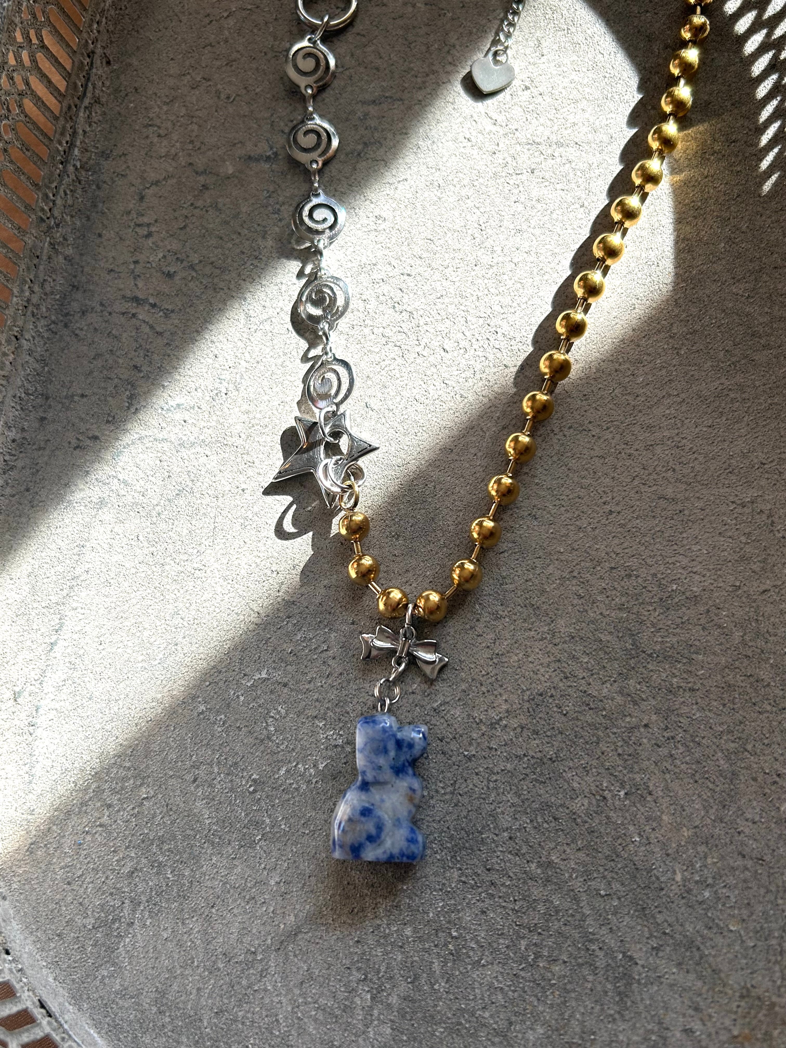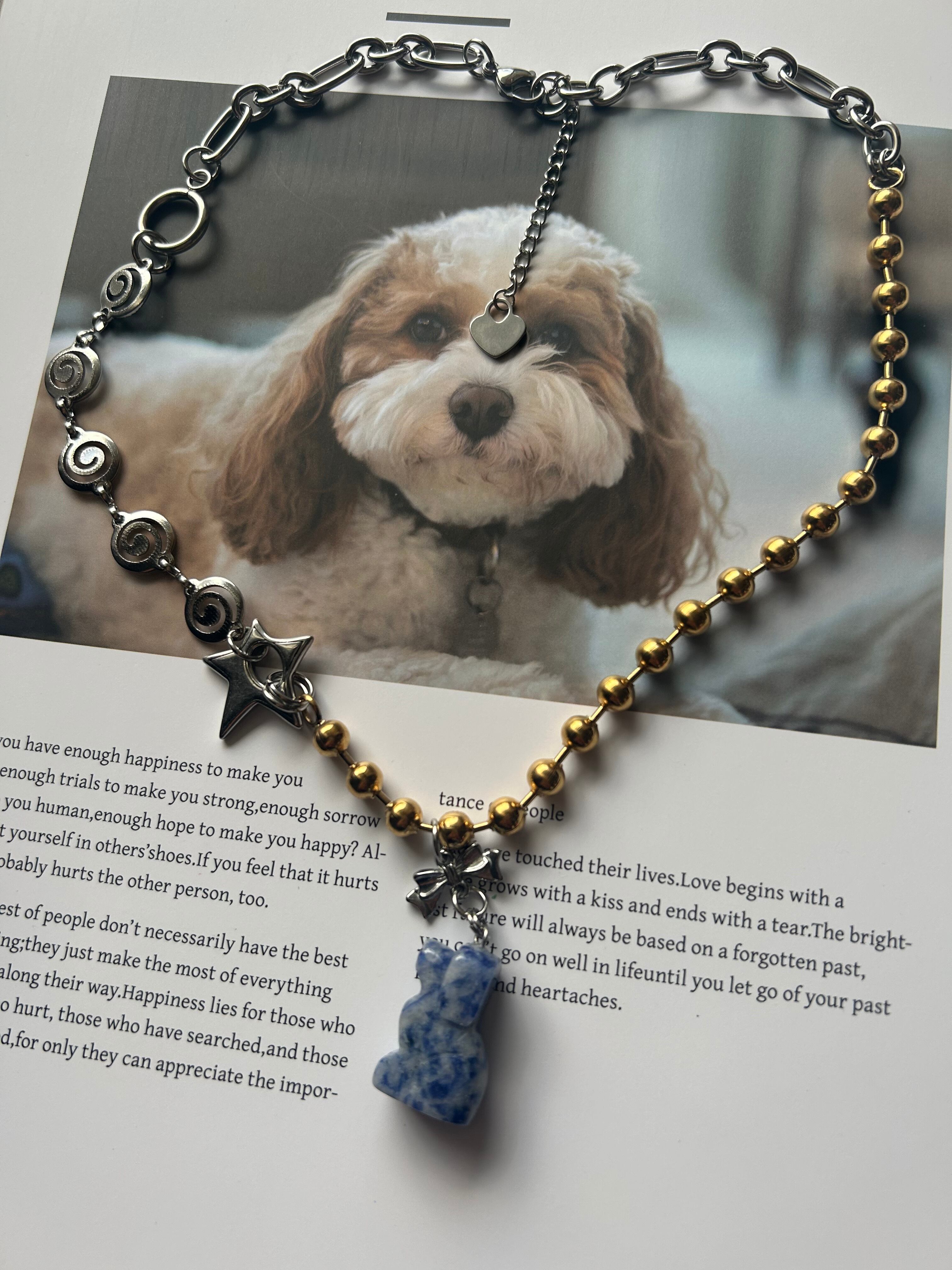 Blue spot jasper dog charm necklace